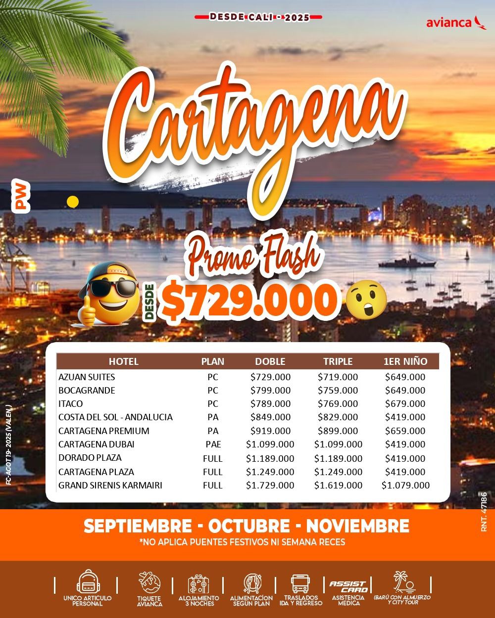 - Vuelo ida y regreso desde Cali a Cartagena en Avianca.