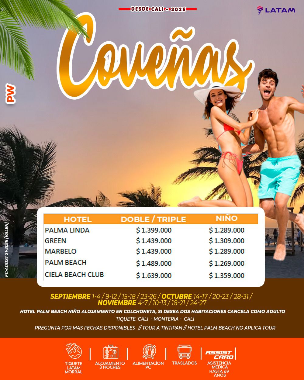• Vuelo ida y regreso desde Cali a Coveñas en LATAM.