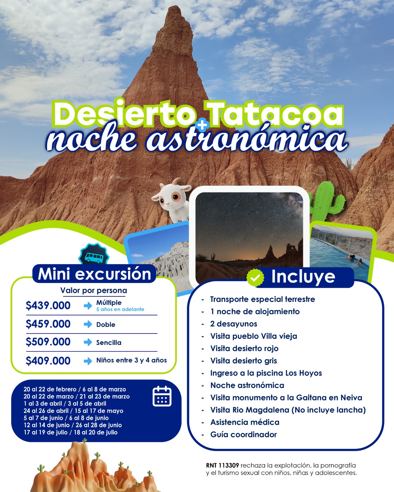 • Tarifas en pesos colombianos por persona, sujetas a disponibilidad, cambio y cancelación sin previo aviso.