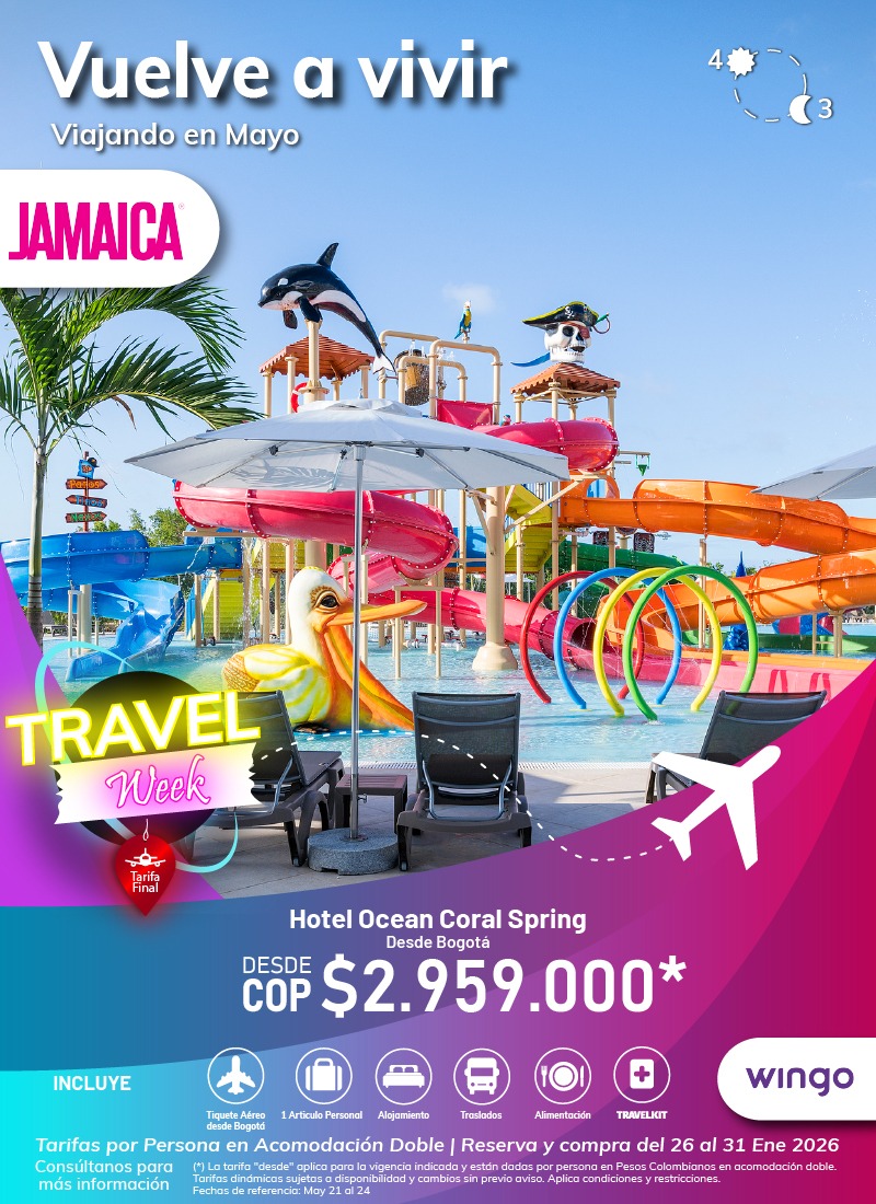 • Vuelo ida y regreso desde Colombia a Jamaica en Wingo.