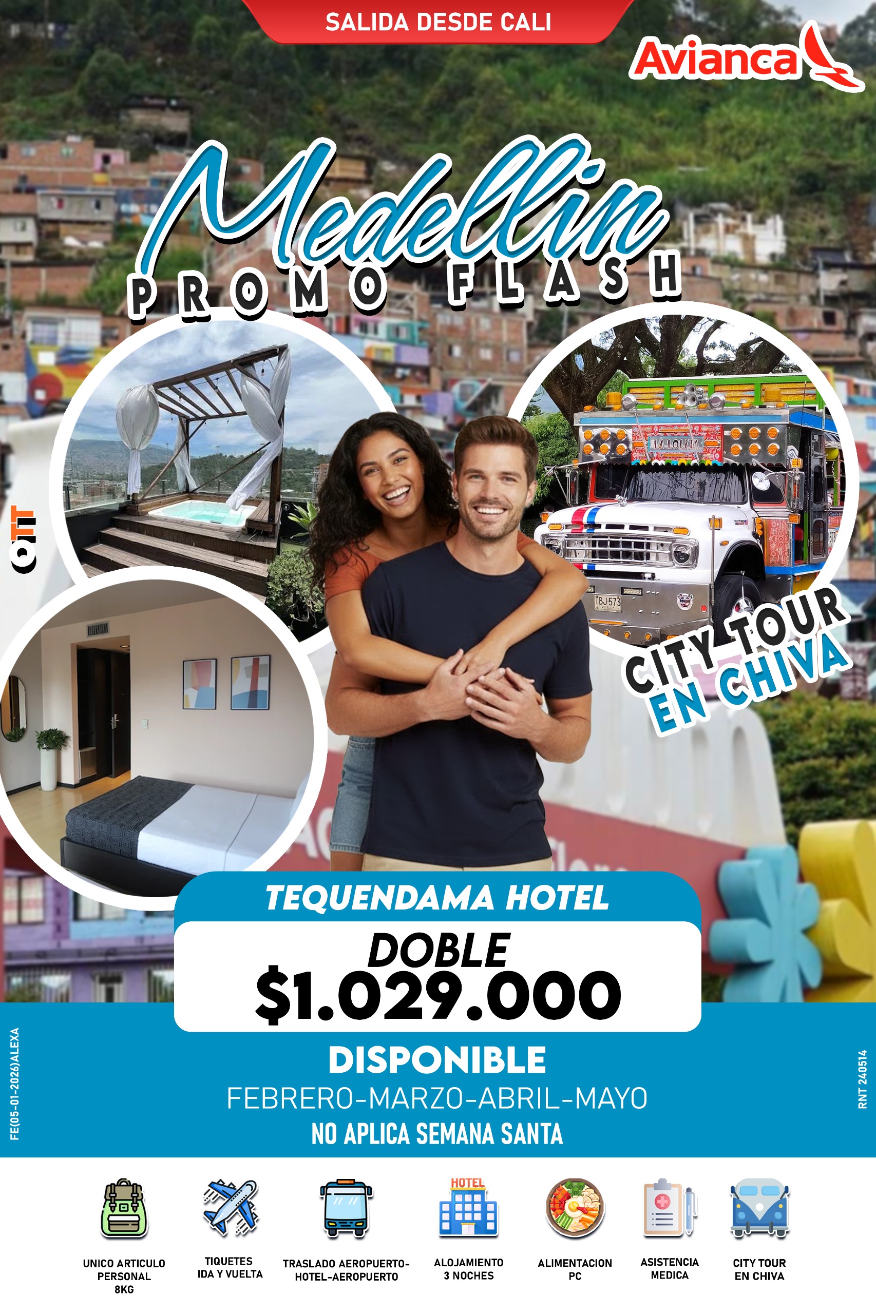 • Tarifas en pesos colombianos por persona, sujetas a disponibilidad, cambio y cancelación sin previo aviso.