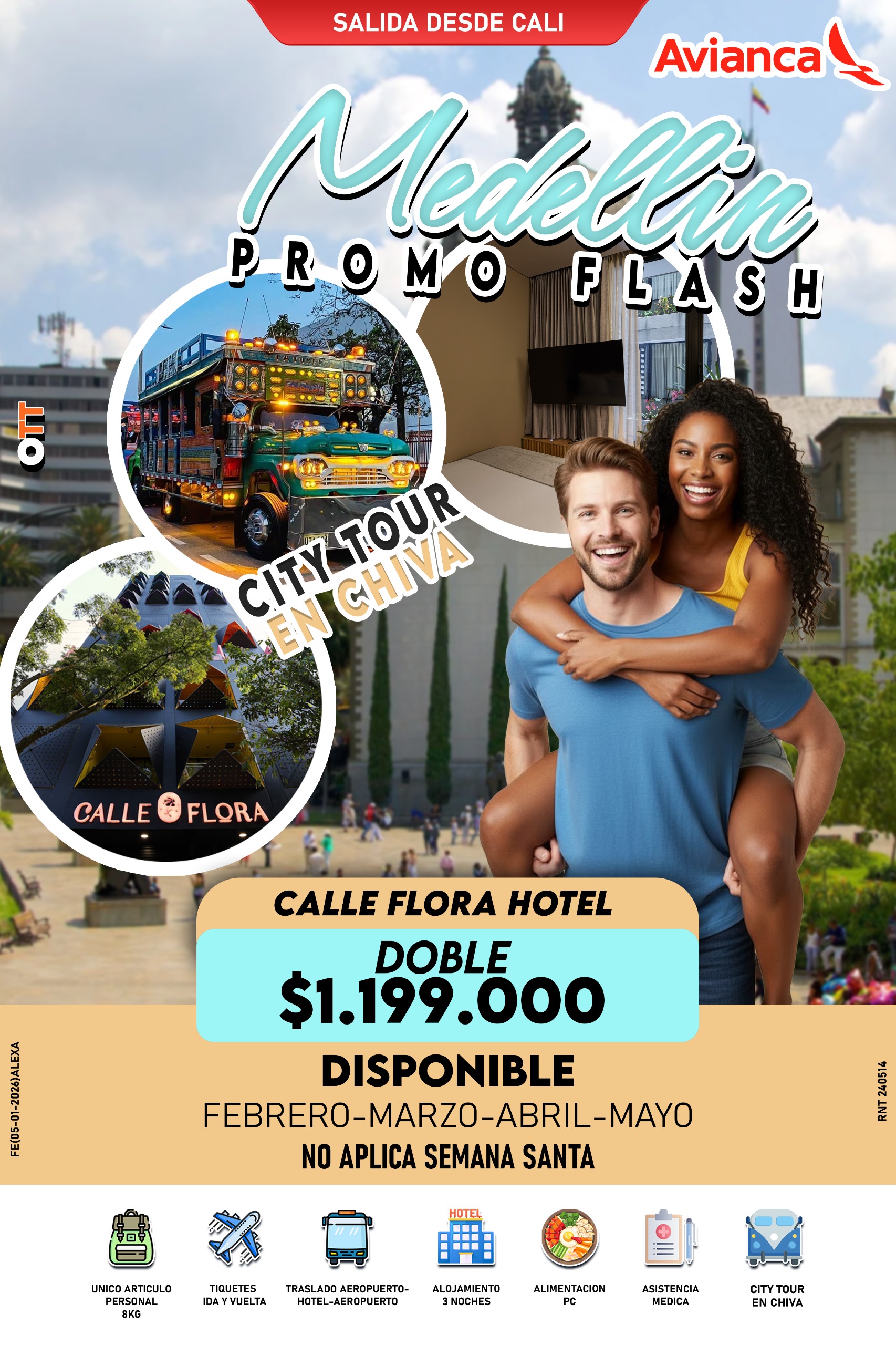 • Tiquetes ida y regreso desde Cali.