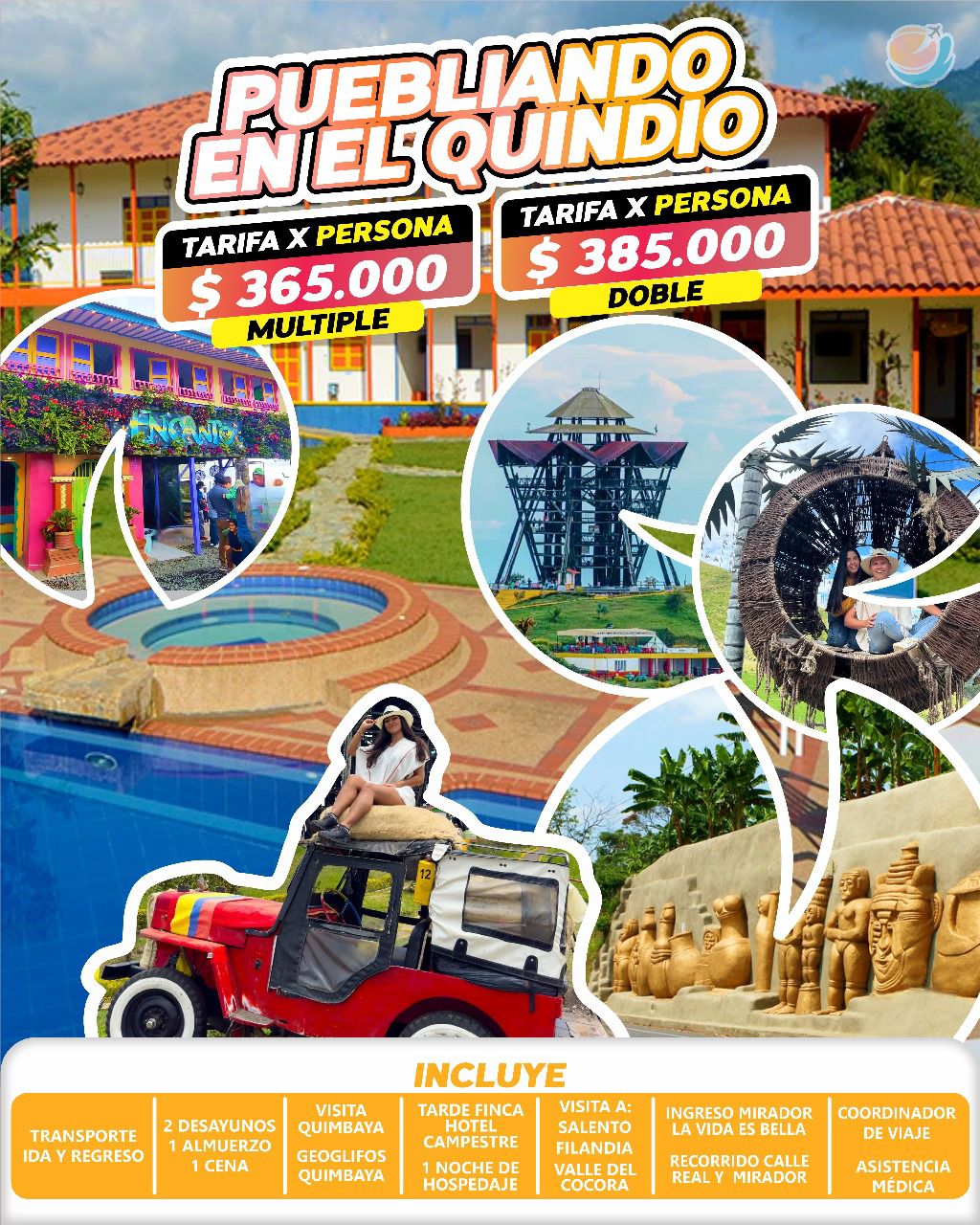 • Tarifas en pesos colombianos por persona, sujetas a disponibilidad, cambio y cancelación sin previo aviso.