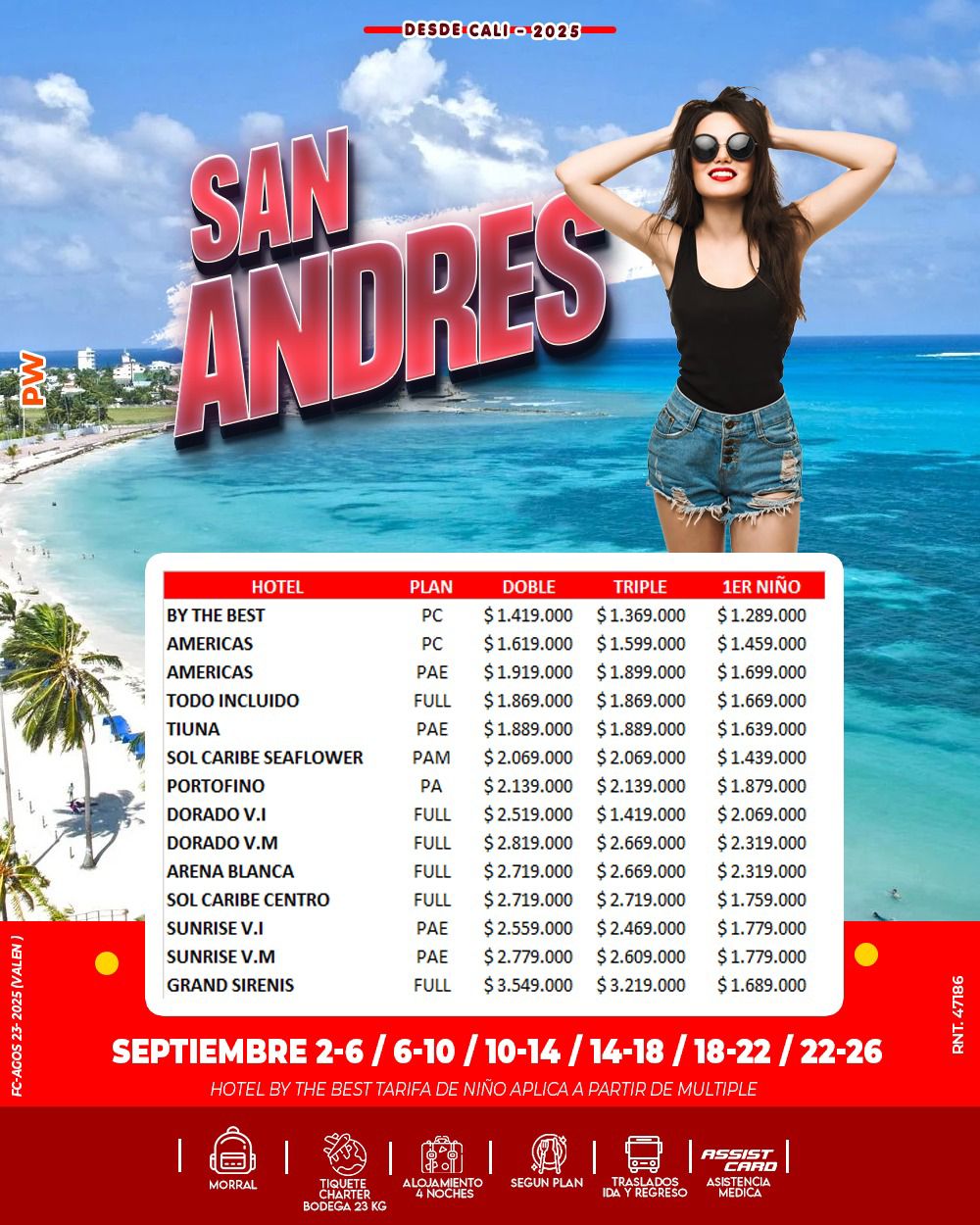 • Tarifas en pesos colombianos por persona, sujetas a disponibilidad y cambio sin previo aviso.