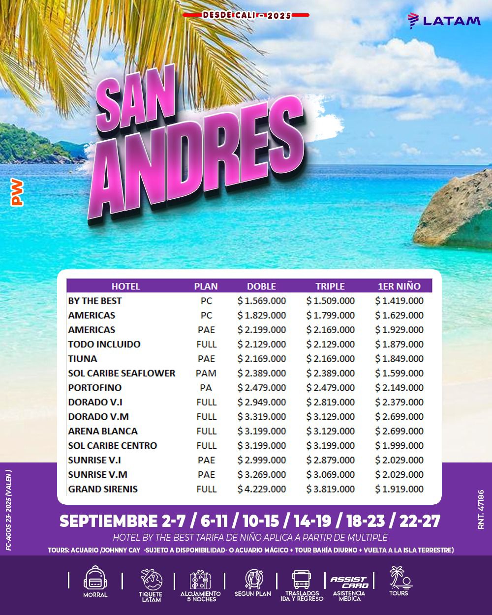 - Vuelo ida y regreso desde Cali a San Andrés en LATAM.
