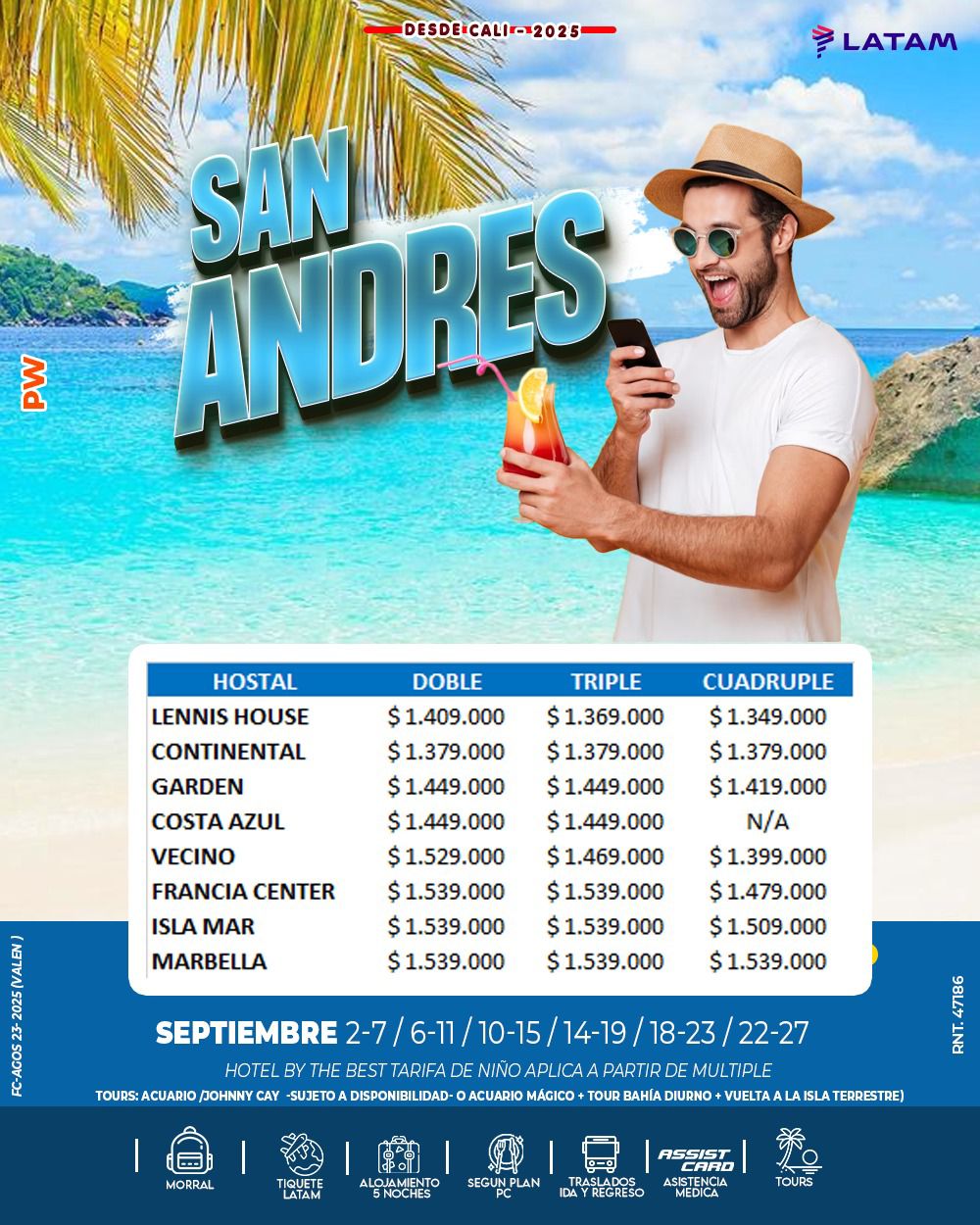 • Tarifas en pesos colombianos por persona, sujetas a disponibilidad y cambio sin previo aviso.